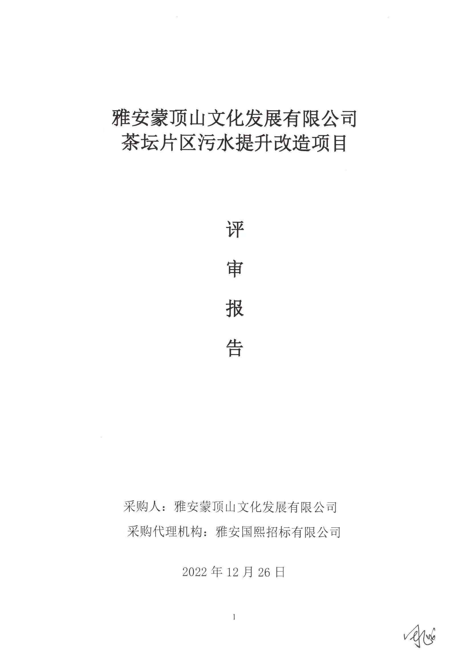 雅安蒙頂山文化發(fā)展有限公司茶壇片區(qū)污水提升改造項(xiàng)目評(píng)審報(bào)誠(chéng)告